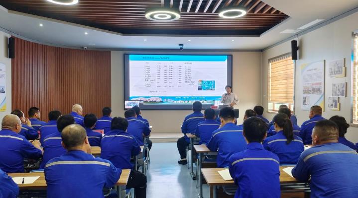 培訓現場氣氛熱烈,學員們專注投入,與專家進行了深入的互動交流。此外,專家還專門與淄博魯中水泥生產相關負責人深入生產一線,實地診斷回轉窯水泥工藝系統運行狀況,結合現場實際問題,共同探討并提出了針對性的優化建議和改進方案,為后續生產實踐的精準提升提供了有力的技術支撐。