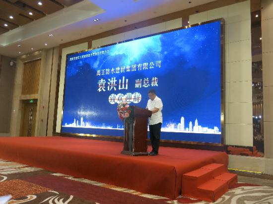 禹王集團副總裁、四川基地總經理袁洪山在會議中表示:在風景秀麗、氣候宜人的成都,我們迎來了四川省建筑工程質量提升暨建筑防水專題大會的勝利召開。作為本次大會的協辦單位,我受禹王集團董事局主席柳志國先生的委托向大會隆重召開表示最熱烈的祝賀,并向光臨本次大會的領導、嘉賓和防水界的新老朋友致以最熱烈的歡迎。在四川省土木建筑學會的大力支持下,在四川省建筑防水協會、四川省建筑科學研究院、各地產公司、設計院、建筑施工企業、眉山市彭山區政府等支持禹王集團的各兄弟單位的緊密配合下,我們禹王集團很榮幸的協辦本次會議。四川禹王生產基地,在眉山市彭山區政府的大力扶持下,于2017年正式投產,為四川及西南市場的供貨提供了便利。為此我們禹王集團希望在四川和在座的領導、專家、同行業朋友一道通過本次會議共同探討新型防水材料與施工技術,為四川省建筑工程質量提升做出貢獻。