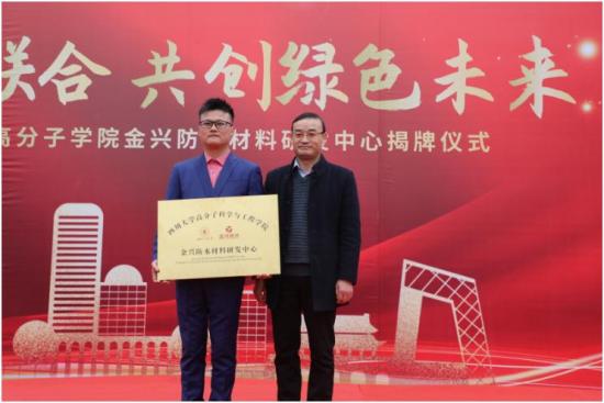 揭牌儀式由大邑縣委、經開區管委會、川大高分子學院和金興領導共同完成。川大高分子學院領導表示將不斷增強校企聯系,實現優勢互補,共同推進金興企業高分子材料研發生產。金興企業董事長期待與川大高分子學院攜手推進綠色防水事業發展,共享新一輪綠色產業的創新成果。