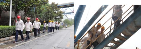 10時許,黨委書記、總經理宋玉安陪同李學功組長、趙勝德、冀亞瓊總經理到生產一線對安全環保工作進行檢查,趙總在檢查中極其認真,他和公司安環及技術管理人員一道,不僅爬上了公司的“制高點”一線預熱器塔,還登上了一線熟料庫頂,所到之處,細心查看,發現問題或亮點,就用手機隨手拍照,他對煤磨現場、余熱發電現場管理規范、整潔等亮點工作表示滿意,他甚至能觀察到預熱器上下梯的扶手、欄桿被抓扶的油亮,預熱器密封廢物利用,以此贊揚崗位工是真巡檢、真到位。