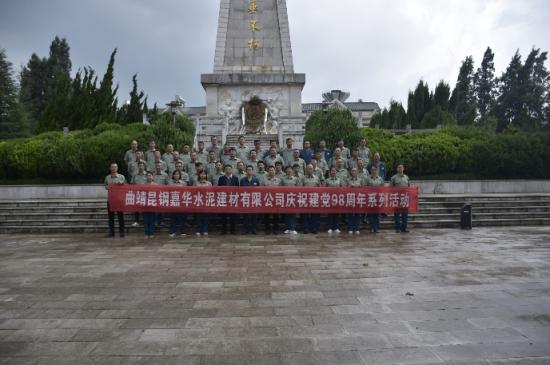 7月14日下午,云南水泥建材集團曲靖公司全體黨員在師宗縣烈士陵園開展“不忘初心牢記使命”主題黨日活動。 在公司黨支部書記的帶領下,黨員們重溫入黨誓詞,逐一向革命烈士紀念碑敬獻鮮花,齊唱《沒有共產黨就沒有新中國》。接著,他們以黨小組為單位開展紅歌比賽,抒發愛黨、愛國、愛企業的熱情。 大家表示,要不忘初心,牢記使命,堅定理想信念,圍繞生產經營中心,大力弘揚團結奮斗的精神,以及黨的優良傳統和作風,愛崗敬業,勇于擔當,勇于奉獻,努力做一個有信仰、有情懷、有擔當的人,奮力做好公司各項工作,為改善運營指標努力奮斗。(尹嬌)