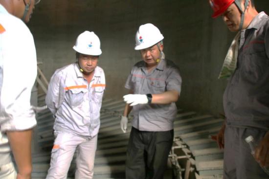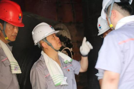 在礦粉庫楊義下到庫底仔細檢查,對庫容、減壓錐大小、庫底充氣斜槽的建設、安裝質量逐項詢問,并對礦粉庫長期安全使用提出指導意見。