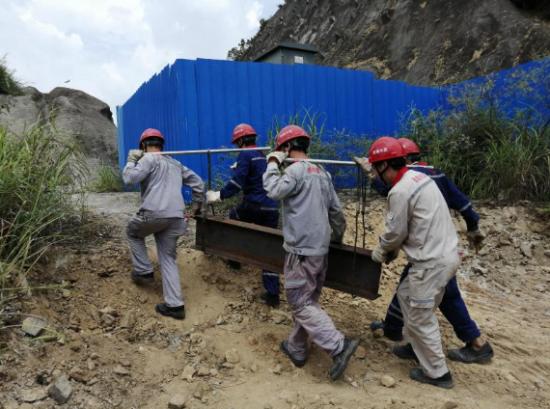 皮帶廊建在深山里,9月正值植被茂盛季節,荊棘灌木遍及山野,這種條件給搶修增加了異常難度,生產支部黨員和生產骨干第一時間沖在前面,深一腳淺一腳地一步步艱難前行,用人工抬的方式將硫化機、卷揚機抬到位。9月的“秋老虎”持續不斷發威;知了也在樹上不停地催問進度。準備機具當天傍晚,后勤保障組送來了盒飯,此時,天氣突然變化,下起了暴雨,一個個被淋成了落湯雞,盒飯也成了泡湯飯。大家互相看看自己狼狽的樣子,會心地笑了。