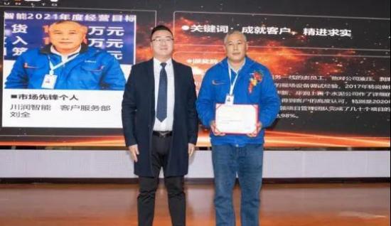 以客戶為中心,成就客戶、精進求實,作為工業服務領域的開拓者,川潤智能各業務線上涌現出許多優秀的員工代表,有全年累計出差290天的服務工程師,有全年輾轉于48個項目現場的技術工程師,還有一切為了客戶、群策群力勇于排除困難的優秀團隊……為表彰先進、樹立榜樣,會上對2020年度優秀個人及杰出團隊進行表彰。優秀員工代表雷鵬發言表示:作為一名產品經理,將在技術線上堅持深耕,高標準、嚴要求、勇創新、迎挑戰,用長期主義促進技術精進,更好的服務于客戶。