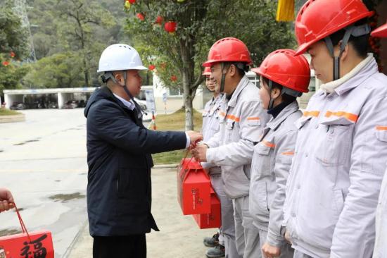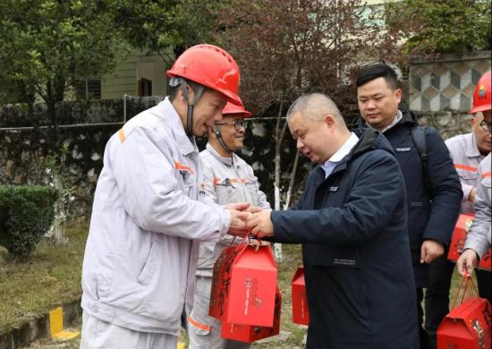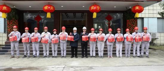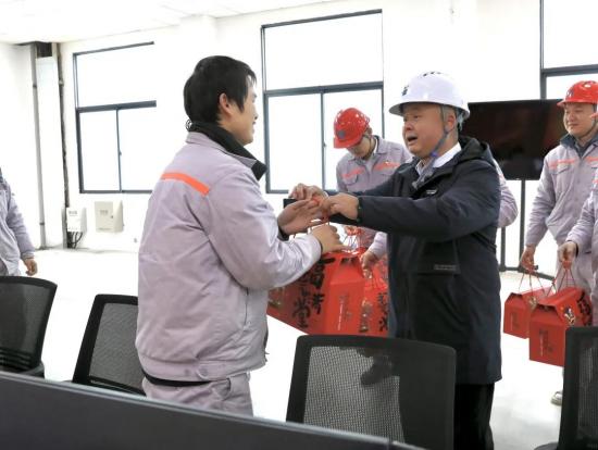 “過年好!過年好!”“大家辛苦了!”“祝大家新年萬事順意,闔家幸福!”每到一處,楊義都親切地與工友們交談,送上新春“福”袋,一聲聲親切問候與祝福,讓大家在寒冷的天氣中倍感溫暖。