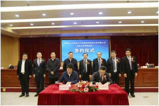 松滋市領導唐敦浩、彭偉、劉德勇、馬香菊,公司副總經理吳祖德、周善儉,辦公室及松滋公司相關負責人參加簽約活動。(葛洲壩水泥松滋公司)