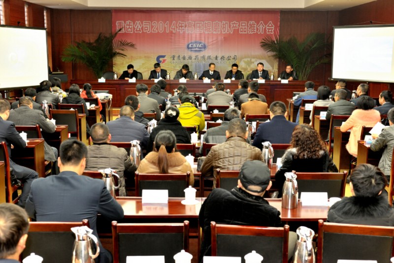 2014年12月12日,重慶齒輪箱有限責任公司(以下簡稱重齒公司)2014年高壓輥磨機產品推介會在重慶江津隆重召開 ,相關行業領導以及媒體人士共計80人左右參加了本次推介會。CKG系列礦用高壓輥磨是該公司在參照國外先進技術基礎上,經技術創新自行開發的新產品。該設備是由兩個相向且同步轉動的擠壓輥組成,一個為固定輥,一個為可移動的活動輥。物料從兩輥上方給入,被擠壓輥連續帶入輥間,受到高壓作用,進行料層粉碎,變成密實的料餅排出。