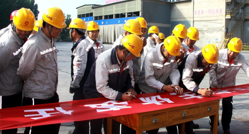 6月6日8時許,郟縣中聯組織一線員工在銷售樓前舉行安全生產月員工集體簽字儀式,這是安全生產月期間的一項重要活動之一。副總工程師、生產品質部部長孫立軍、安環辦主任李國良在儀式上就安全生產月活動做了精彩發言并就安全生產提出了要求。(石群良 武召紅/圖文)