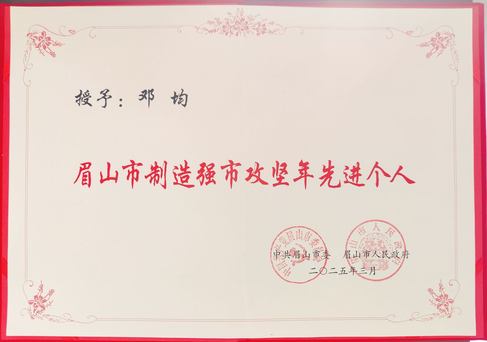 (通訊員:陳獻)近日,四川省眉山市召開制造業發展大會暨建圈強鏈工作推進會議,本次會議以“堅持以新型工業化為主導,全面總結制造強市三年行動成效,推進全市制造業和重點產業鏈高質量發展”為主題,旨在表彰先進、總結經驗、部署未來工作。中建新材四川廠副廠長(主持工作)、安全總監、環境總監鄧均榮獲“眉山市制造強市攻堅年先進個人”稱號。